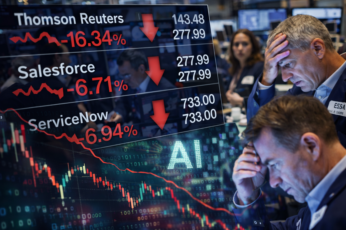 The selloff was most pronounced among companies exposed to legal, data and analytics services, sectors now seen as particularly vulnerable to automation by AI tools.